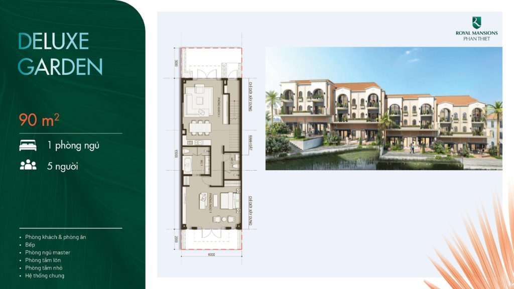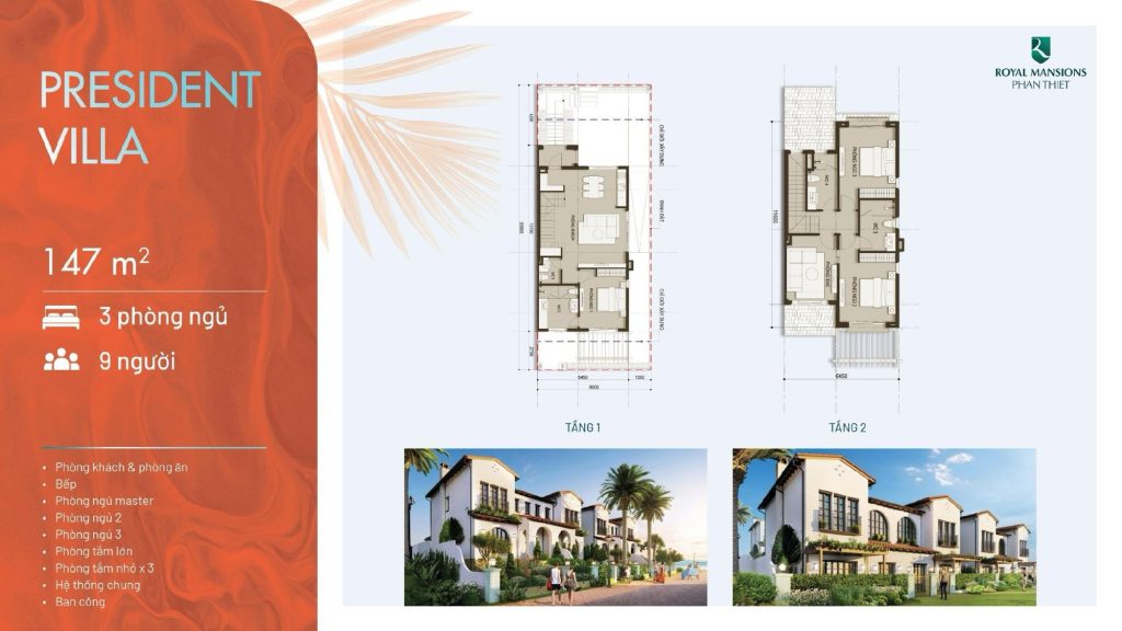 - Biệt thự sang trọng: 3 – 4 phòng ngủ, đầy đủ tiện nghi.